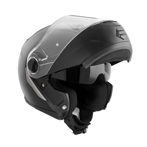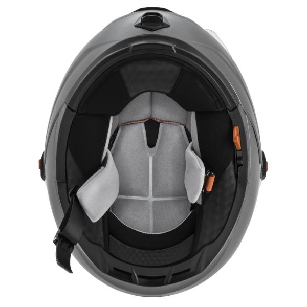 Mooie systeemhelm met zonnevizier. Goede pasvorm en praktisch in gebruik. Systeemgedeelte met één knop te bedienen. Uitneembare en wasbare binnenvoering.